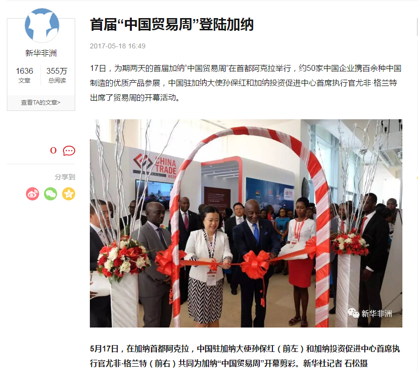17日,為期兩天的首屆加納“中國貿(mào)易周”在首都阿克拉舉行,約50家中國企業(yè)攜百余種中國制造的優(yōu)質(zhì)產(chǎn)品參展,中國駐加納大使孫保紅和加納投資促進中心首席執(zhí)行官尤非·格蘭特出席...